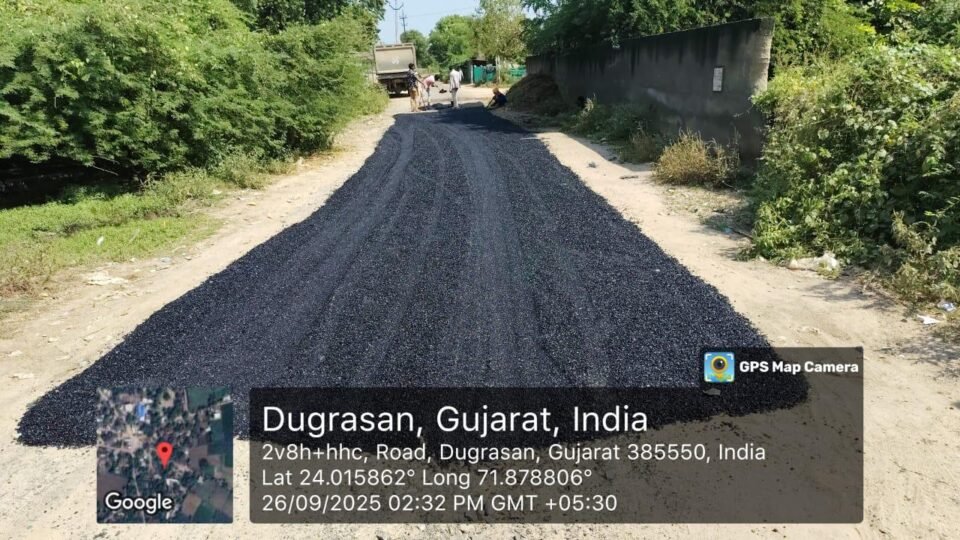 કાંકરેજ તાલુકાના ખારીયા થી મોટા જામપુર રોડ નું ડામરકામ શરૂ કરવામાં આવ્યું …..