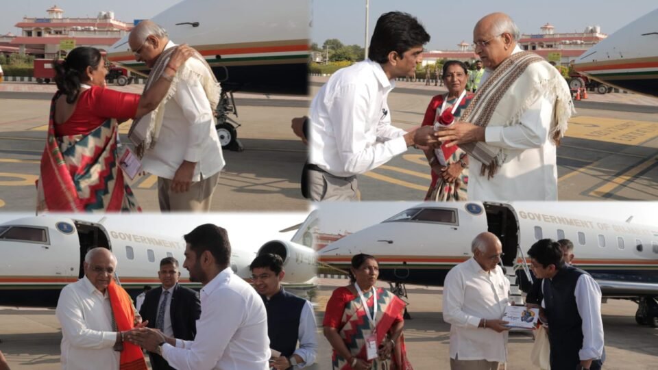 રણોત્સવ સહિત વિવિધ કાર્યક્રમોમાં સહભાગી થવા કચ્છ પધારેલા મુખ્યમંત્રીશ્રી ભૂપેન્દ્ર પટેલનું ભુજ એરપોર્ટ પર ભાવભર્યું સ્વાગત કરવામાં આવ્યું હતું. મુખ્યમંત્રીશ્રીનું કચ્છી શાલથી સન્માન કરીને કચ્છી સંસ્કૃતિ મુજબ આવકાર આપવામાં આવ્યો હતો. આ પ્રસંગે ભુજ નગરપાલિકા પ્રમુખશ્રી રશ્મિબેન સોલંકી, નિવાસી અધિક કલેક્ટરશ્રી ડી.પી.ચૌહાણ, અગ્રણીશ્રી રક્ષિત શાહ સહિત પદાધિકારીશ્રીઓ, અધિકારીશ્રીઓ ઉપસ્થિત રહ્યા હતા.